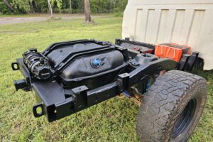 - The tank can be flipped around after mounting to accommodate the filler neck on either side of the vehicle. The brackets are simple to install by bolting to the factory tank straps and self-locating on the rear chassis.