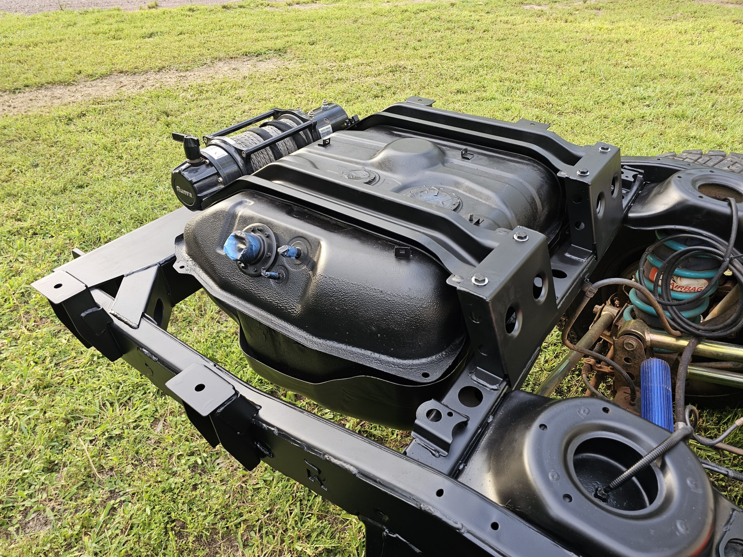 - Once installed, there’s enough space for exhausts on either side of the tank, preventing off-road damage. This is a budget-friendly long-range fuel tank solution for your build.